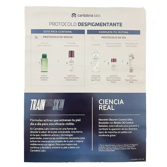 Neoretin is a product from the Cantabria Labs laboratory that is used to combat skin blemishes. It is an intensive renewing depigmenting product that, in addition to the Pigment Control System technology, is formulated with 10% of . This solution improves skin texture and the appearance of pores thanks to its renewing and depigmenting ingredients. It evens and brightens the tone, reduces glycolic acid,spots and hyperpigmentation on the skin.