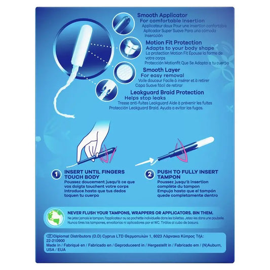 Compact Pearl is a line of products from this brand that offers three types of tampons. The Regular is ideal for girls who are using this type of pad for the first time. It has a compact telescopic applicator with a discreet wrapper, and is easy to insert thanks to its size and softness. It contains an anti-leak braid at the end for extra protection. This product is also available in Super and Superplus sizes. Tampax compak Pearl thanks to MyFit Protection adapts to the body shape in a unique way. The tampon should be changed approximately every four hours. When it is removed, check to see if there are any white fibres left without staining, this means that you need a less absorbent tampon. If you have to change the pad before the recommended four hours have elapsed, you need a more absorbent tampon. You can buy tampax compak in the online pharmacy Farmaciasdirect. This format is ideal to take with you wherever you go. Tampons have been used since time immemorial as one of the most popular feminine protection products to contain blood during the menstrual cycle. However, these tampons have the most advanced innovations for their proper insertion. Hygiene of the intimate area is very important, and even more so during menstruation. It is advisable to wash your hands before opening and touching this product.