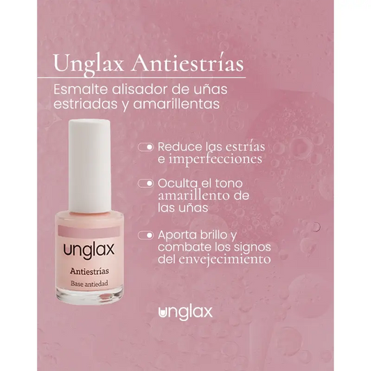 Unglax is a company dedicated to personal nail care. Its products have been developed by Laboratorios Viñas, using components that are not harmful to the nail structure, free of aggressive elements such as formaldehyde, camphor or toluene. Its creams, polishes and nail polish removers combine natural essences of sweet almond oil, aloe vera and ceramides, resulting in products that are delicate and gentle on the nails, giving them more shine, more strength, more hardness and healthier and less harmful growth.It also regenerates and restructures damaged nails thanks to its daily intensive strengthening treatments, also providing the nail polish with an emollient and moisturising active ingredient.