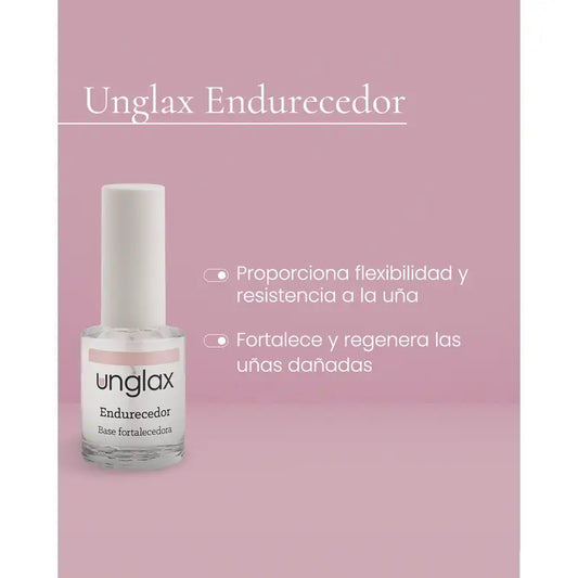 Unglax has received very positive reviews for the care of brittle and fragile nails, those that break easily. Good nutrition and hydration are also necessary, as well as the use of hardening and strengthening products. Whenever a strengthening process such as Unglax is carried out, it is important to keep the nails short, clean and free of other varnishes, which minimises the causes of breakages, splinters and ridges, while the nails start to grow healthy and strong. Filing should also be done very carefully, dragging the soft file perpendicular to the thickness of the nail, never over the top to avoid making them thinner and more prone to breakage. To repair and harden the nails, massage them with the intensive strengthening treatment and then apply Unglax hardener like a nail polish to protect and shine the nails.