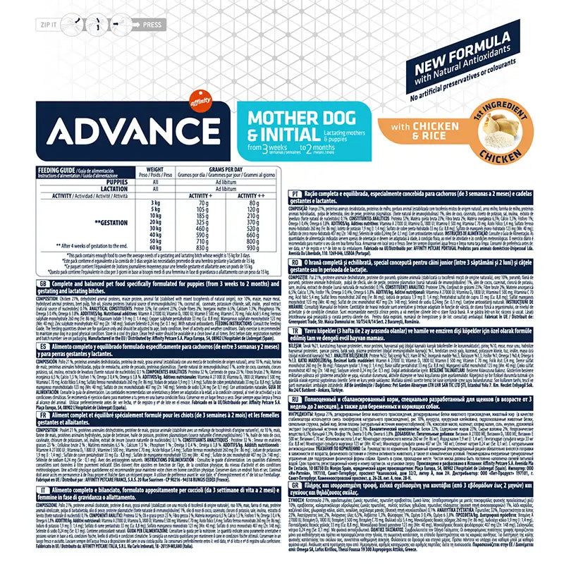 Advance Baby Protect Mother Dog & Initial is suitable for feeding puppies (from 3 weeks to 4 months) and pregnant or lactating females.