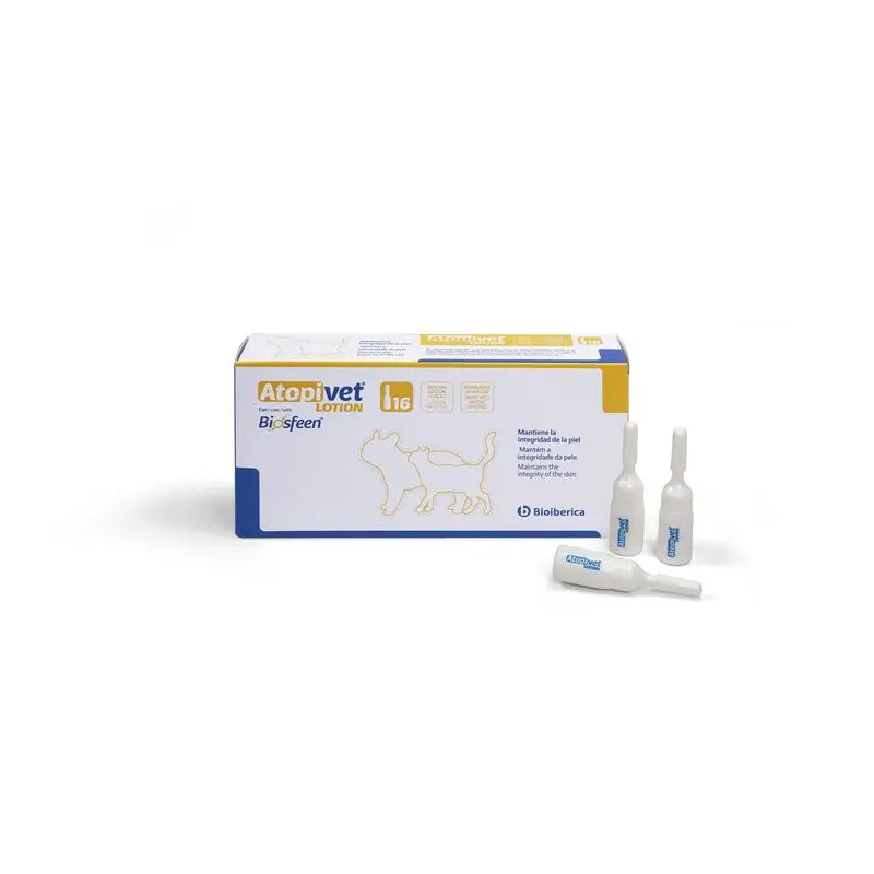 Atopivet Spot-On lotion manufactured by Bioiberica is a product for topical application, designed to promote the health of the skin of pets, specifically dogs and cats of any breed and weight. It uses a formula rich in nutrients that will promote hydration, softness, flexibility and firmness of the skin of the animal.