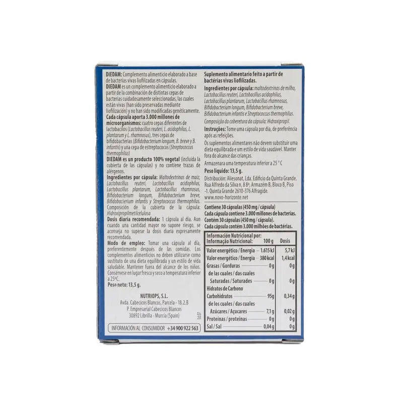The intake of Diedam helps to prevent irritable bowel and liver problems. Its function also contributes to a better assimilation of nutrients.