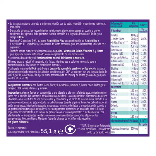 Femibion 3 is a food supplement specially formulated for mothers who are breastfeeding their child. It is intended both to provide essential nutrients to the baby through breast milk and to serve as a good source of nutrients for the mother.
