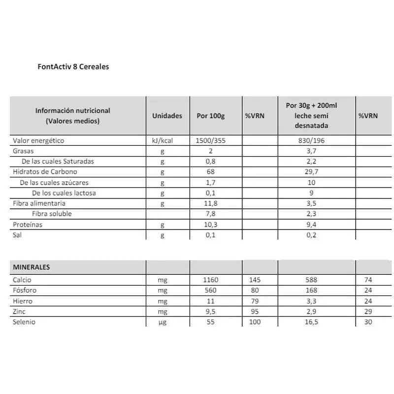 New formula made from a balanced blend of cereals: wheat, whole wheat, rice, maize, rye, oats, buckwheat, spelt and barley. FontActiv 8 Cereals has: