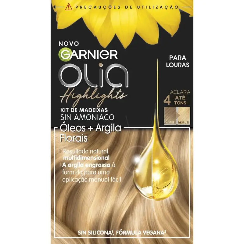 https://www.farmaciasdirect.eu/products/garnier-olia-highlights-garnier-olia-highlights-permanent-colouring-permanent-ammonia-free-with-natural-floral-oils-blonde-toneGA3600542482479Garnier Olia Highlights Ammonia Free Permanent Colouring With Natural Floral Oils - Blonde ShadeOlia Highlights is the first ammonia-free highlighting kit, enriched with floral oils and kaolin clay, for easy manual application and a natural result. Personalise your look with Olia Highlights for blondes: balayage, ombré or contouring. Get highlights full of luminous highlights and softer, silkier hair, as radiant as natural hair.Ingredients1119728 B - INGREDIENTS: AQUA / WATER - CETEARYL ALCOHOL - BEHENTRIMONIUM CHLORIDE - CETYL ESTERS - CAMELLIA OLEIFERA SEED OIL - HELIANTHUS ANNUUS SEED OIL / SUNFLOWER SEED OIL - COCOS NUCIFERA OIL / COCONUT OIL - DILAURYL THIODIPROPIONATE - POTASSIUM HYDROXIDE - ISOPROPYL ALCOHOL - TOCOPHEROL - BENZOIC ACID - PARFUM / FRAGRANCE (F.I.L. Z282167/1).CharacteristicsEnriched with kaolin clay for easy and precise hand application. The clay thickens the formula for a non-drip, drip-free, easy-to-apply velvety texture that is easy to apply by hand.In addition, its delicate fragrance makes application a more pleasurable experience.https://www.farmaciasdirect.eu/cdn/shop/files/garnier-olia-highlights-coloracion-permanente-sin-amoniaco-con-aceites-florales-naturales-tono-rubio.webp?crop=center&height=300&v=1725128218&width=300https://www.farmaciasdirect.eu/cdn/shop/files/garnier-olia-highlights-coloracion-permanente-sin-amoniaco-con-aceites-florales-naturales-tono-rubio.webp?crop=center&height=100&v=1725128218&width=1008.511.02.522.73
