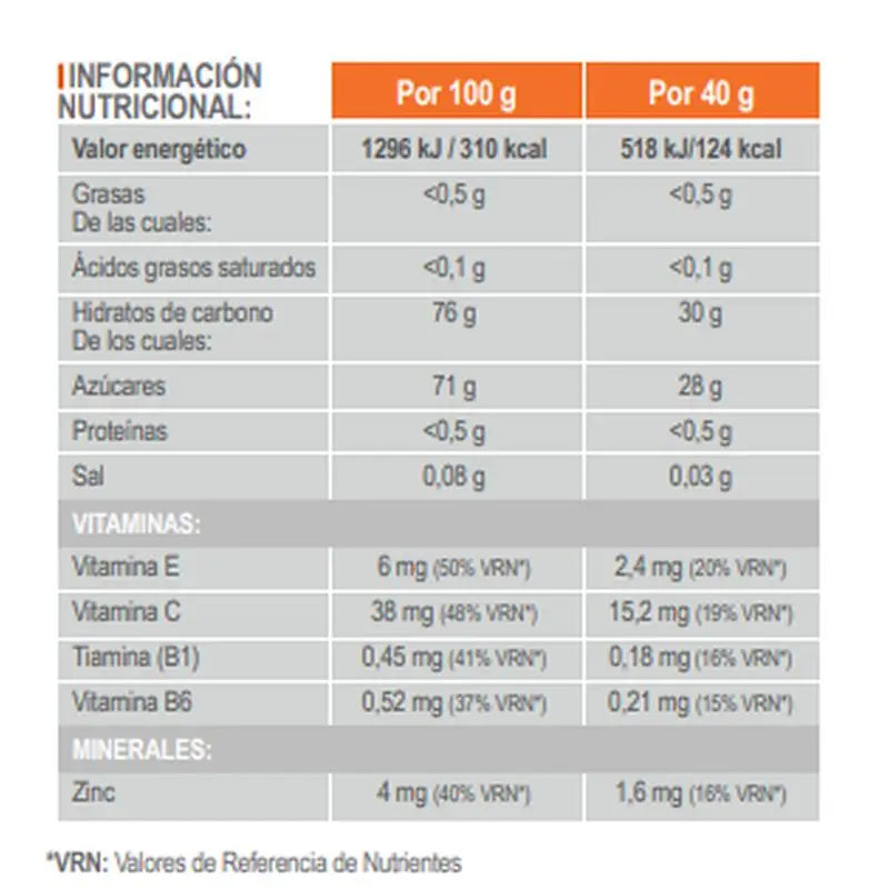 The Nd3 Solid Citrus energy bar from Infisport acts as a good energy recovery product, as well as providing antioxidant, neutralising and defatiguing properties that are optimal for a good physical workout. It is an ideal food or snack for post-training or during the hours of greatest physical intensity, as it promotes muscle recovery, helps to improve performance and delays fatigue and tiredness by maintaining adequate levels of glycogen in the body. Its formula is enriched with essential branched-chain amino acids (BCAA'S) in an 8:1:1 ratio (Leucine+), L-Glutamine that promote greater physical performance. Leucine+ helps to improve endurance during intense efforts and acts to prevent the degradation of muscle tissue due to natural ageing. It also has a favourable effect on carbohydrate metabolism.