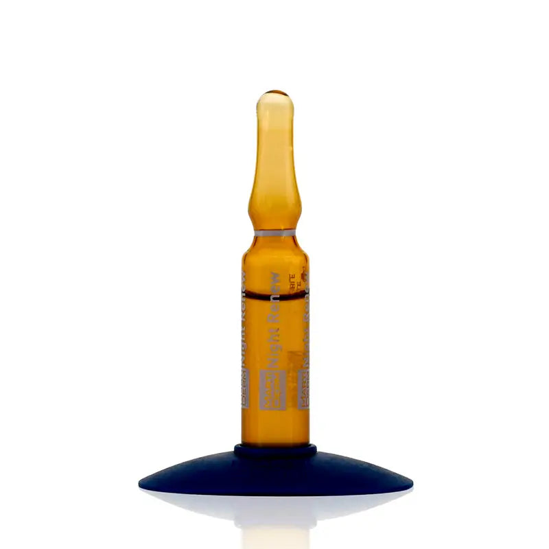 Due to their high alpha hydroxy acid content, Platinum Night Renew ampoules gently exfoliate the surface layers of the skin. Marine collagen , together with hyaluronic acid , prevents water loss and stimulates the production of collagen and elastin , while moisturising, protecting and giving structure to the skin.