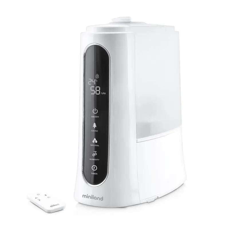 It cleans and purifies the home environment. humitouch pure is an ozone humidifier that helps to purify the air with an autonomy of more than 50 hours. Ideal for rooms of up to 40m2, it prevents the formation of bacteria and bad smells, while allowing you to regulate the optimum humidity level for each room. It also incorporates a compartment for essences so you can create a whole world of sensations for you and your baby. And you can do it all from a distance thanks to its remote control.