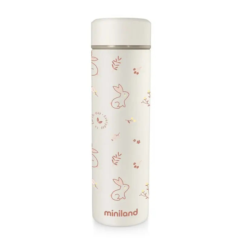 Keeps liquids at the right temperature for over 12 hours Miniland thermals are highly resistant and efficient thanks to their double steel wall plus a unique copper layer and vacuum chamber. Design with natural motifs The natur thermy range has attractive designs inspired by nature, with two models to suit the tastes of all parents, and a soft rubbery exterior.