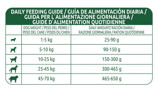 Serve dry. When feeding Superior Care for the first time, gradually introduce it into your dog's diet over a period of 3 days. Feeding amounts: see table. Your dog may eat more or less depending on his age, temperament and activity level.