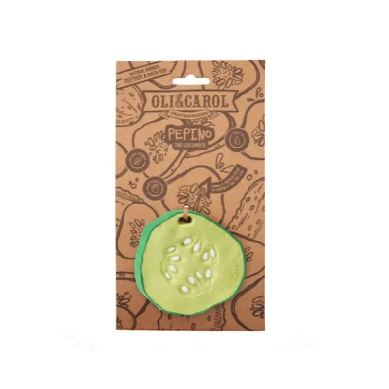 Cucumber the Cucumber is a baby teether, bath toy and sensory play toy. Inspired by a sliced cucumber, its design has realistic textures that help stimulate babies' senses and soothe teething gums.