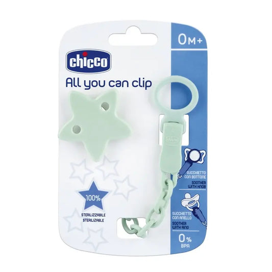 Suavinex pacifier clip. This clip allows you to attach dummies to your baby's clothes, thus preventing them from falling on the floor, getting dirty or getting lost.The clip of the brooch, which is attached to the clothes, has a ring in which to insert the soother.for babies from 0 months.soft and flexible silicone chain for soothers, in a single piece of silicone for greater security. The soother chain can be combined with the new models of soothers, dummy holders and bottles in the Colour Essence Suavinex collection. The Colour Essence Collection, a series of products specially chosen for those who are looking for the TOP in the light childcare sector. When innovation and beauty merge.about us: We are Suavinex, a company specialising in the baby and mother care sector. All our products are made with great care and affection, which is why we are synonymous with safety and confidence. As a result of our efforts and constant innovation, we offer a complete catalogue of products with Bisphenol A-free materials and an innovative, top-quality cosmetic range for pregnant women, mothers and babies.