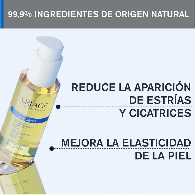 Uriáge Bariéderm is a dermatological oil with 99.9% natural ingredients and its main purpose is to smooth, even skin tone and nourish the skin. It also prevents the appearance of stretch marks and improves different skin imperfections, especially the most recent ones. It contains active ingredients that promote cell regeneration, help repair the hydrolipidic barrier, fill cracks and heal the entire affected area.