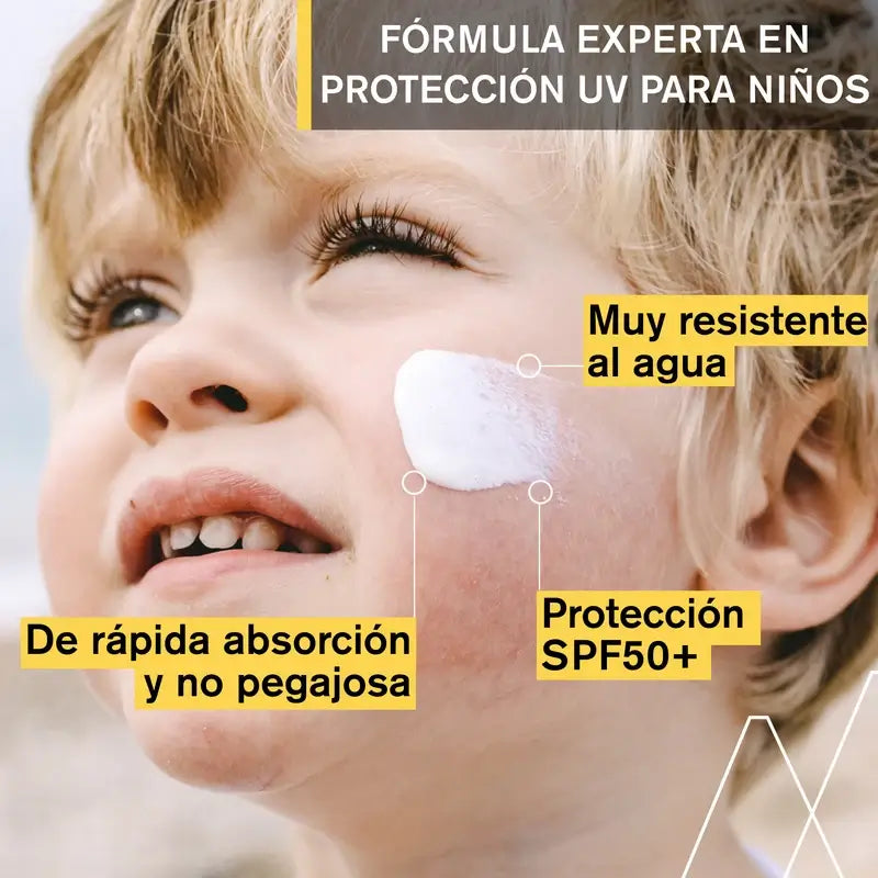 Sun milk for children that provides very high SPF50 protection against UVA-UVB rays and free radicals, and prevents skin dryness.
