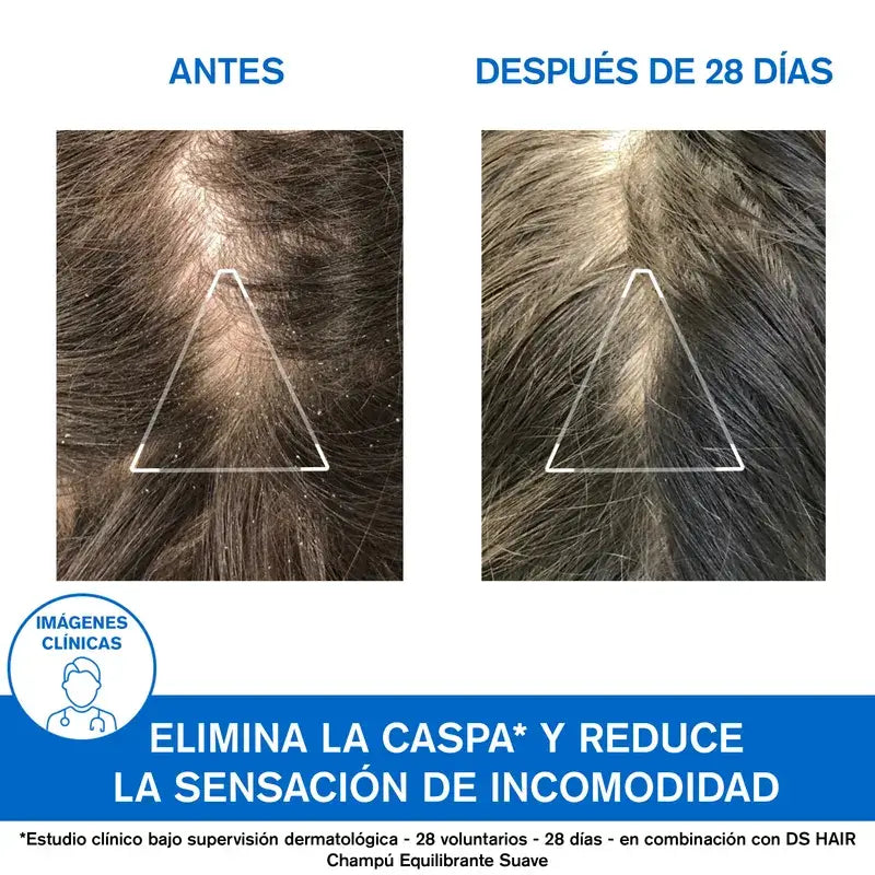 93% ELIMINATES DANDRUFF. Clinical study under dermatological control - 28 subjects - 42 days - in combination with DS HAIR Gentle Regulating Shampoo - Percentage of satisfaction. 96% REDUCES THE FEELING OF DISCOMFORT.